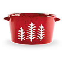 This oven-to-table stoneware serving bowl blends rustic charm with functionality. Featuring a distressed finish, embossed pine tree details, and sturdy handles, it's perfect for serving and storing food safely. Each unique piece meets FDA tableware standards and is designed for year-round use.