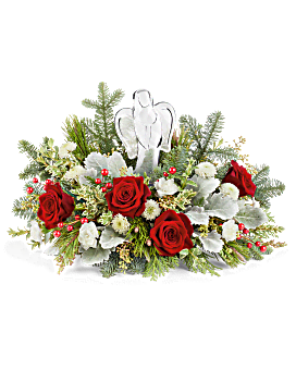 Celebrate the season with Teleflora's Joy to the World Bouquet. Featuring red roses, snowy white blooms, and festive evergreens, it's beautifully arranged around Teleflora's keepsake Crystal Angel-perfect for Christmas or a heartfelt holiday gift.